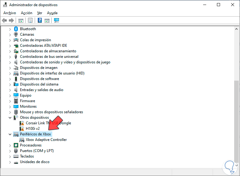 Si tienes problemas y no te reconoce bien el mando Xbox una vez conectado, ve al Administrador de dispositivos y verifica que te detecta el mando como periférico de Xbox