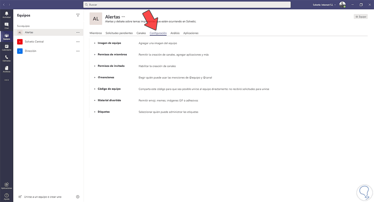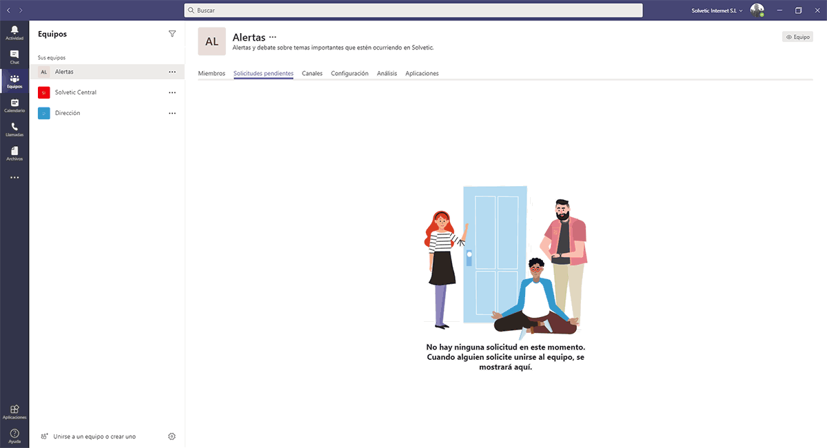 Abrimos Teams, vamos a Equipos en la sección izquierda de la aplicación y podemos ver los equipos creados allí: