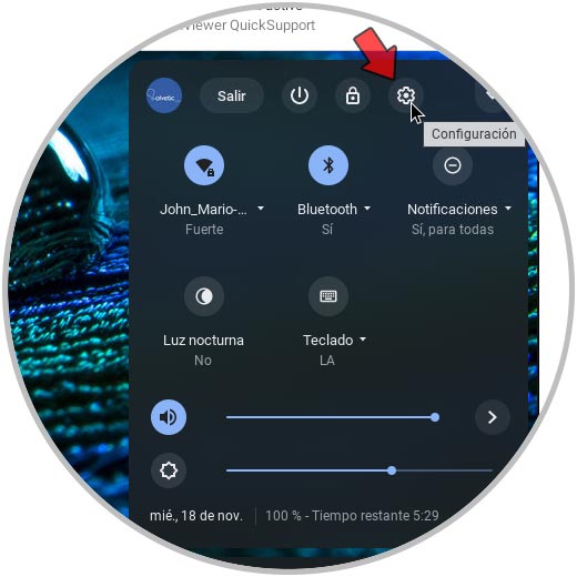 Esto permite que el espacio local del disco duro no se vea afectado. Después de estas opciones, vamos a Ajustes rápidos y allí seleccionamos “Configuración”: