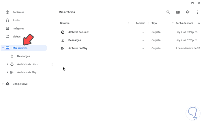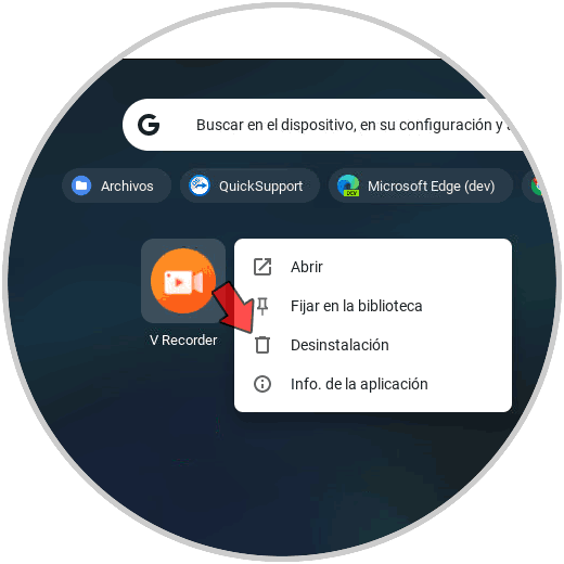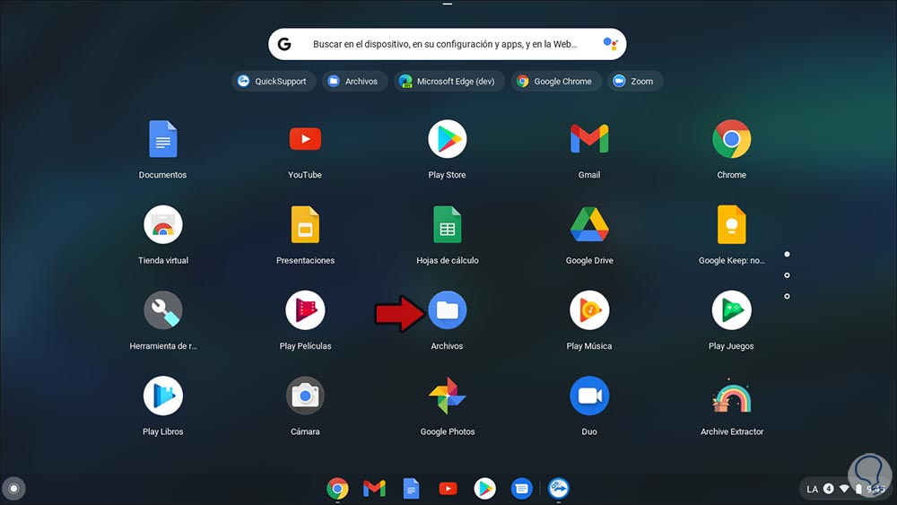 Para iniciar el proceso, vamos al buscador de Chromebook donde veremos lo siguiente: