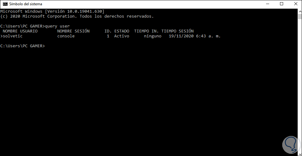 2. Cómo saber nombre de usuario desde consola de CMD Windows 10