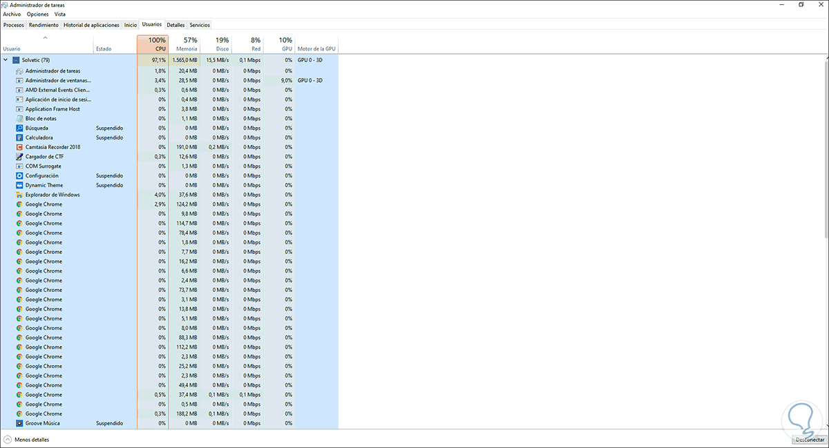 Podemos dar clic sobre el usuario para ver todos los procesos y aplicaciones asociadas.