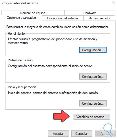 Damos clic en “Configuración avanzada del sistema” y será desplegada la siguiente ventana: