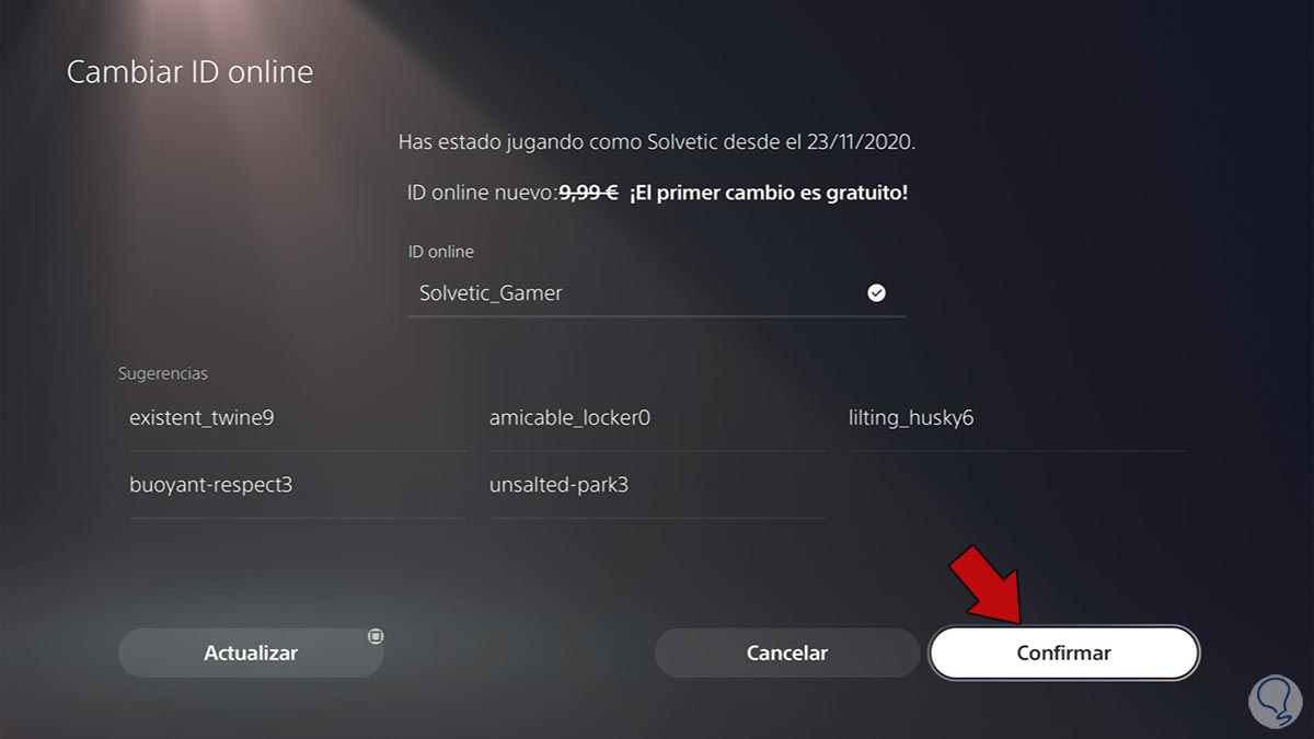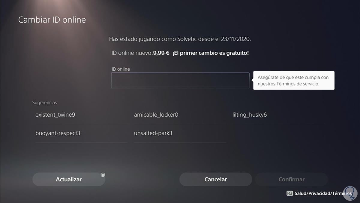 Ahora debes escribir el nuevo nombre que quieres tener en los juegos online como Fortnite.
