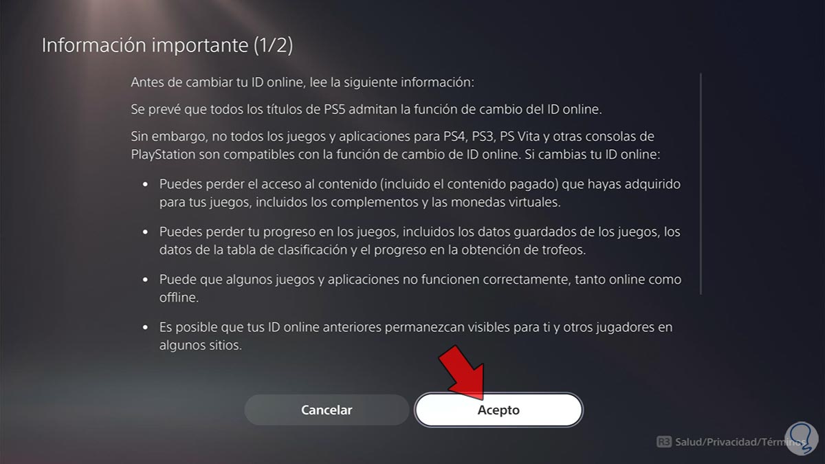 Ahora debes aceptar las condiciones del cambio de nombre.