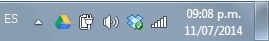 En esta barra de tareas se encuentran una serie de íconos que indican el estado de ciertos ajustes en tu computadora, de izquierda a derecha yo puedo ver el idioma en el que está mi teclado (particularmente yo lo cambio de inglés a español por conveniencia), una flecha hacia arriba que representa los íconos ocultos (ya llegaremos a eso), el estado de Google Drive, el nivel de batería que tengo, mi manejador de volumen, mi Dropbox, la señal del Wi-Fi al que estoy conectado y la hora.