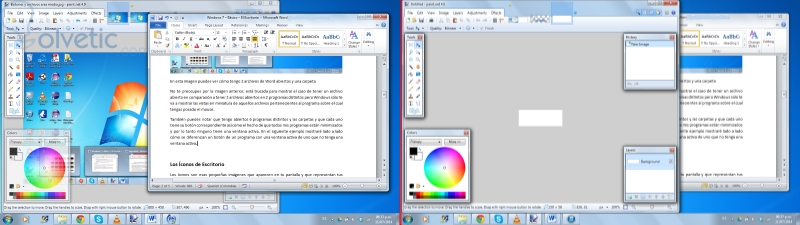 Como verás, en la izquierda el botón correspondiente a Word está iluminado ya que Word es el programa activo y está hasta el frente de la pantalla, en la derecha paint.net (un programa que les recomiendo descarguen) es el programa activo y su botón es el que está iluminado.