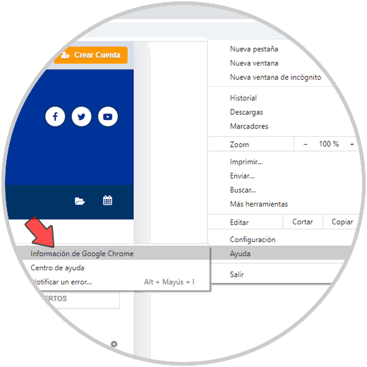Abrimos Google Chrome y vamos al menú “Ayuda – Información de Google Chrome”: