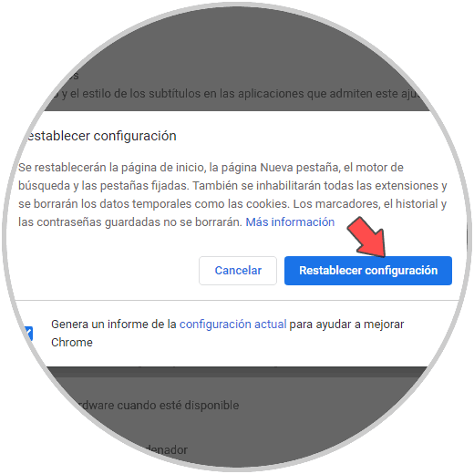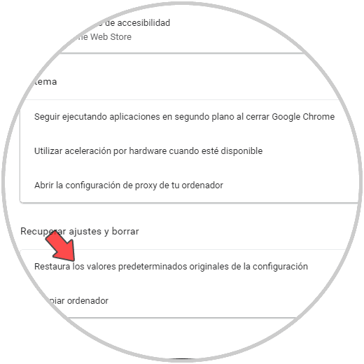 Este es el método para restaurar Google Chrome a sus valores de fábrica.