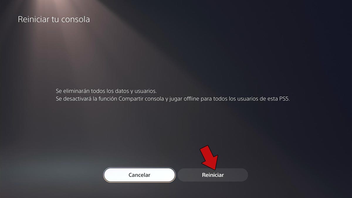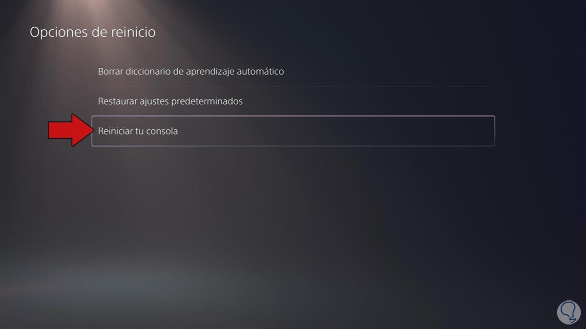Lo siguiente que veremos serán varias opciones. En este caso seleccionamos "Reiniciar tu consola"