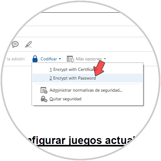 Luego de esto, vamos a asignar la contraseña para abrir el archivo PDF, para ello damos clic en la opción “Codificar” y seleccionamos “Encrypt with Password”: