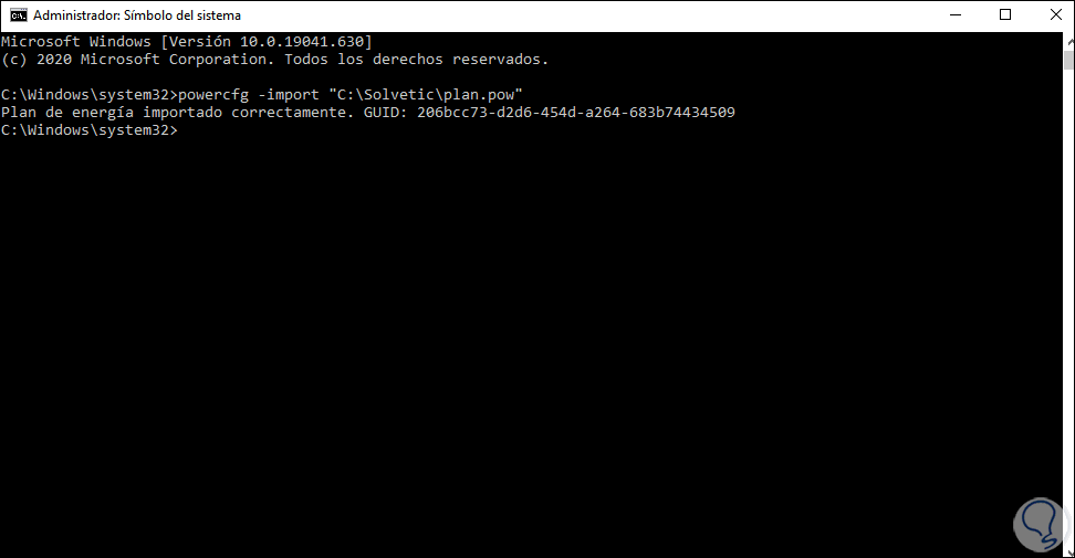 Ahora, otra de las opciones es usando CMD, para ello lo primero es haber creado una copia de seguridad del plan de energía deseado en el formato archivo.pow: