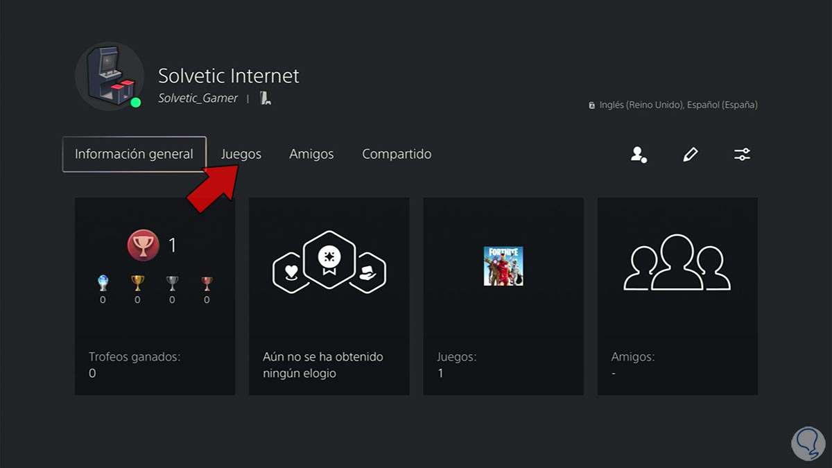 Lo siguiente que debes hacer es pulsar en la pestaña superior en "Juegos"