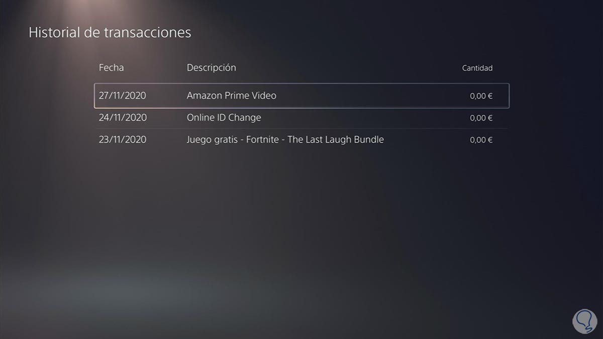 De este modo vas a poder conocer todas las transacciones que se han realizado en la PS5 en el periodo de tiempo seleccionado.