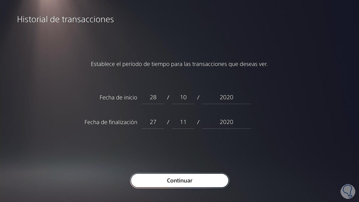 Ahora debes seleccionar el tramo de tiempo que quieres ver en el que se han realizado compras o transacciones en la PS5.