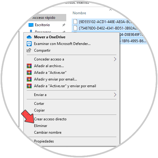 Seleccionamos los archivos allí alojados y procedemos a eliminarlos: