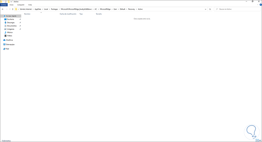 Abrimos la carpeta MicrosoftEdge e iremos a la ruta User\Default\Recovery\Active: