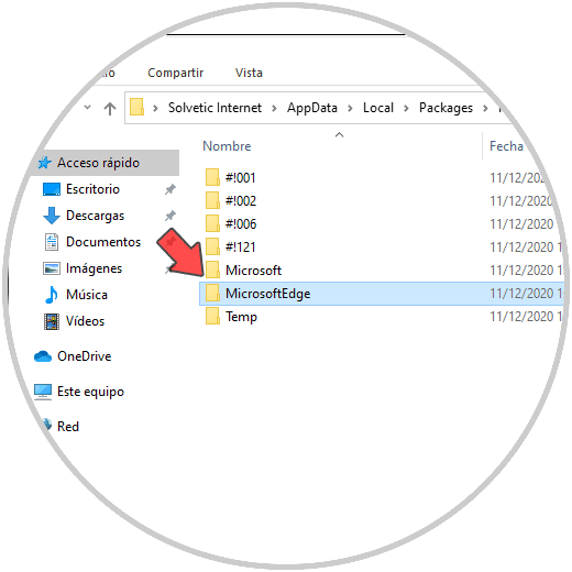 Pulsamos en Aceptar y será desplegado lo siguiente, vamos a la ruta \Local\Packages y luego ubicaremos la siguiente carpeta: