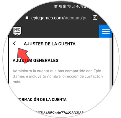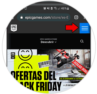 Iremos a la página de Epic Games desde un móvil o PC e iniciaremos sesión con la cuenta asociada desde el siguiente link. Ahora pulsa en las 3 líneas de menú