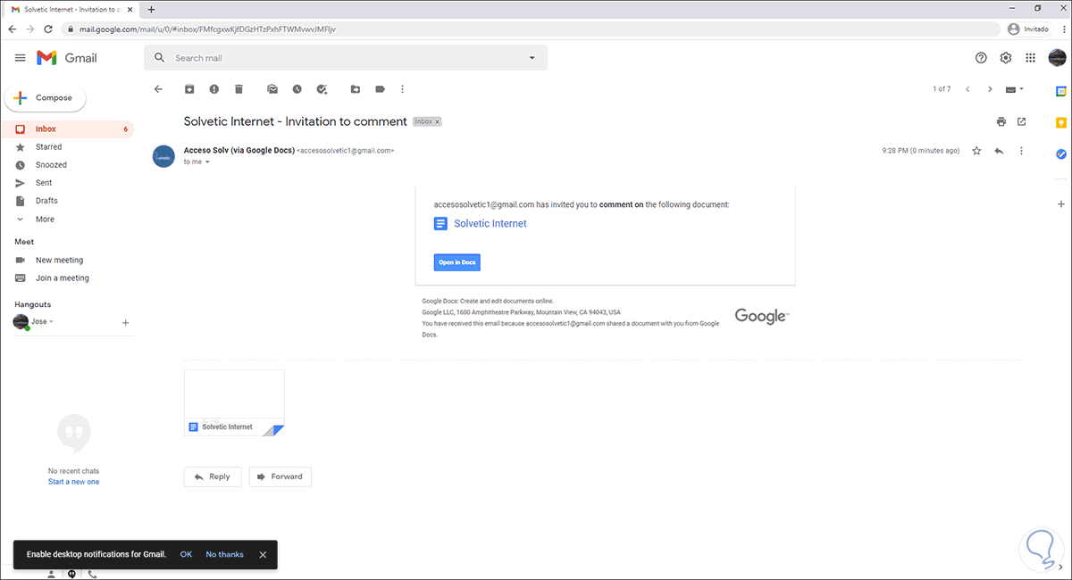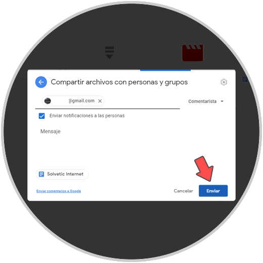 Volvemos al menú anterior y compartimos el enlace con el destinatario dando clic en Enviar: