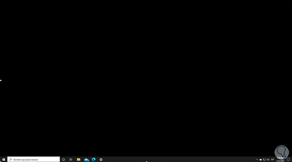 Vemos un fondo totalmente negro y la barra de tareas disponible, aunque nos puede dar susto de primer impacto es algo que no nos debe preocupar ya que la solución es demasiado simple y Solvetic te explicará cómo recuperar el fondo de pantalla actual.