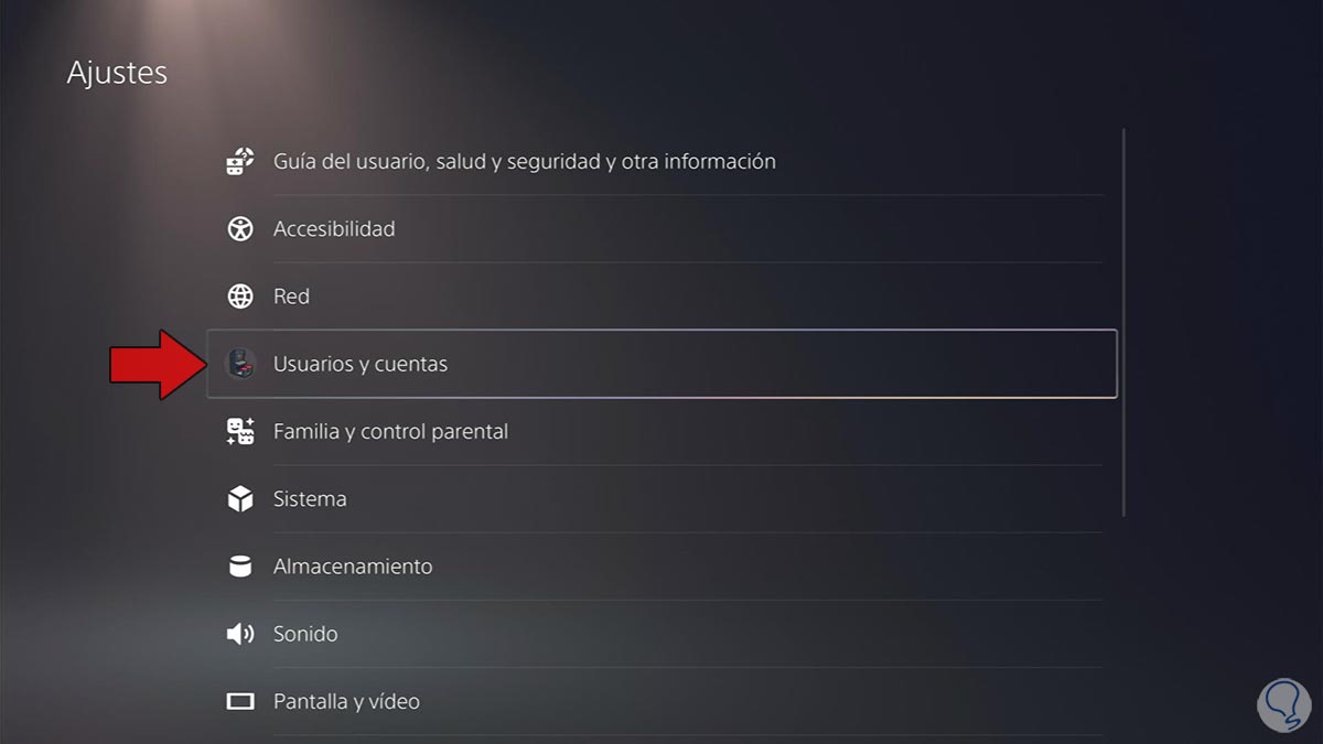 Ahora en el menú debes seleccionar el apartado de "Usuarios y cuentas"