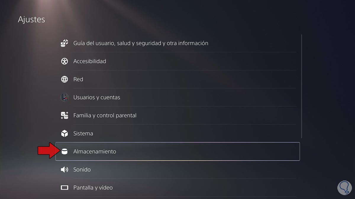 Lo siguiente que debes hacer es pulsar en el apartado de "Almacenamiento"