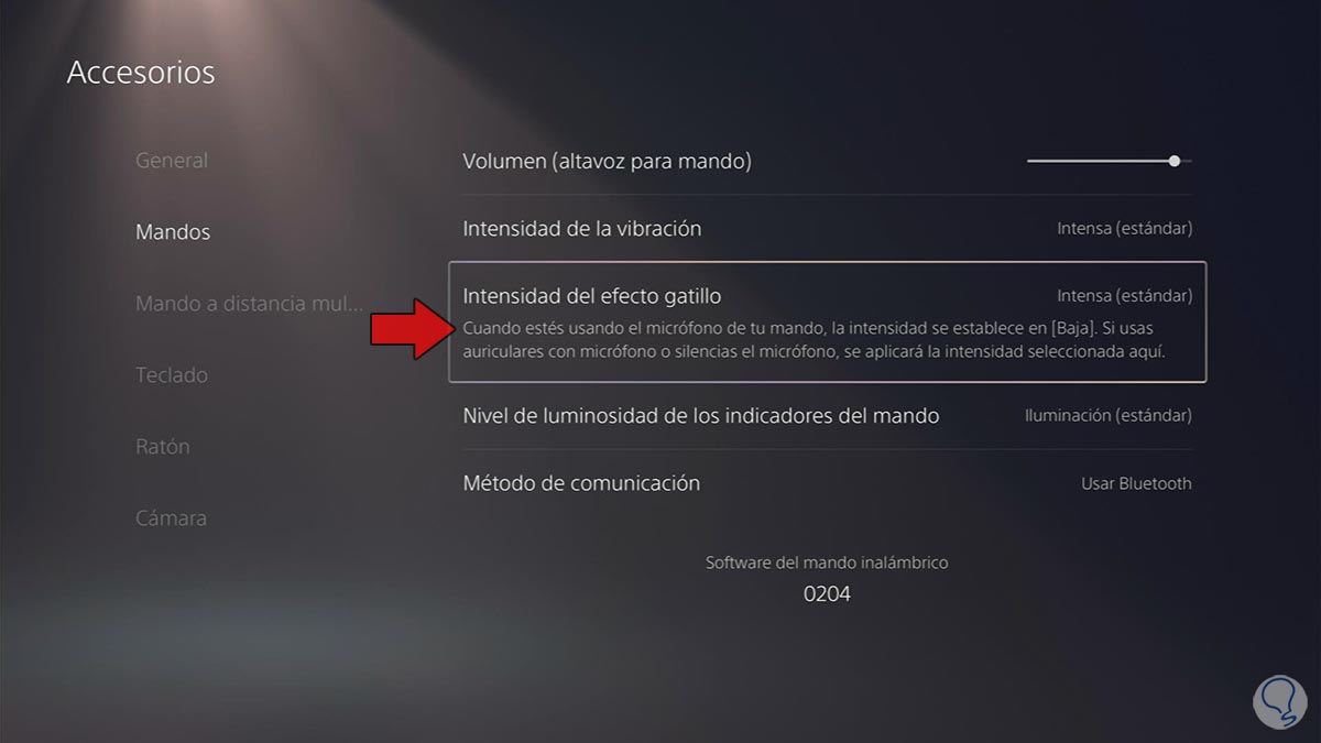 Ahora en el nuevo menú en el apartado de "Mandos" verás que aparece una opción que pone "Intensidad del efecto gatillo" Debes entrar aquí.