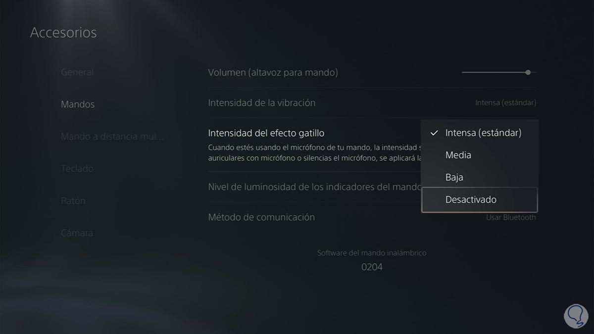 De este modo vas a poder activar o desactivar el efecto gatillo en la PS5 o seleccionar la intensidad de este siempre que lo necesites.