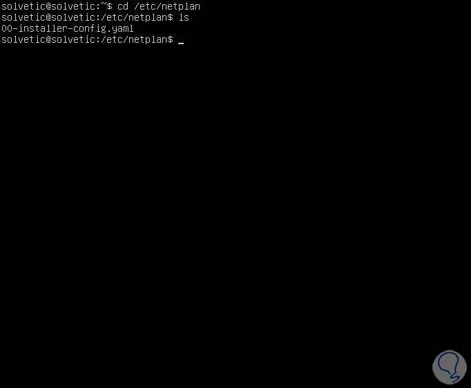Vemos que finaliza en .133, para establecerla como una IP fija, vamos al directorio /etc/netplan y listamos su contenido con el comando ls: