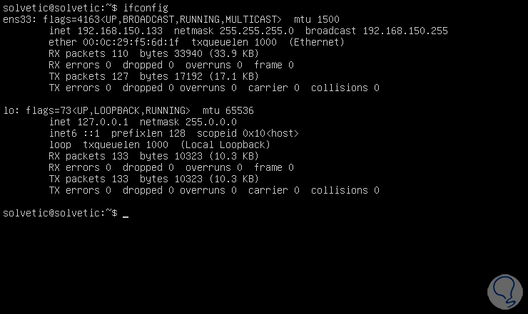 Luego usamos de nuevo el comando ifconfig para validar que la IP establecida como fija es la que posee el equipo: