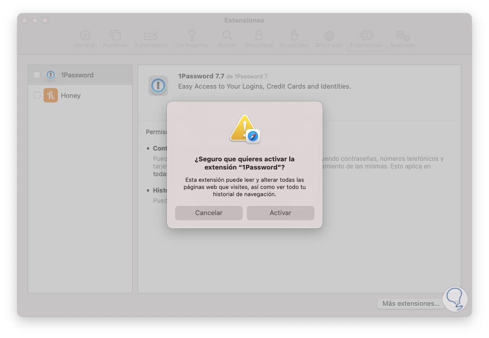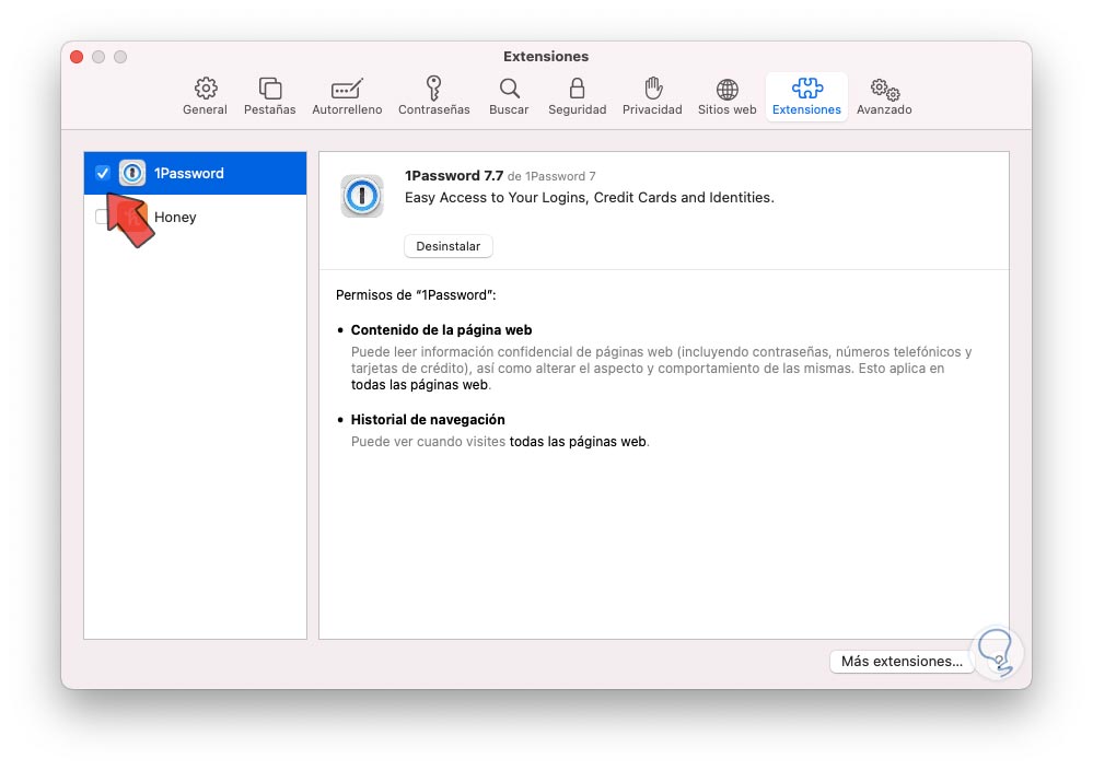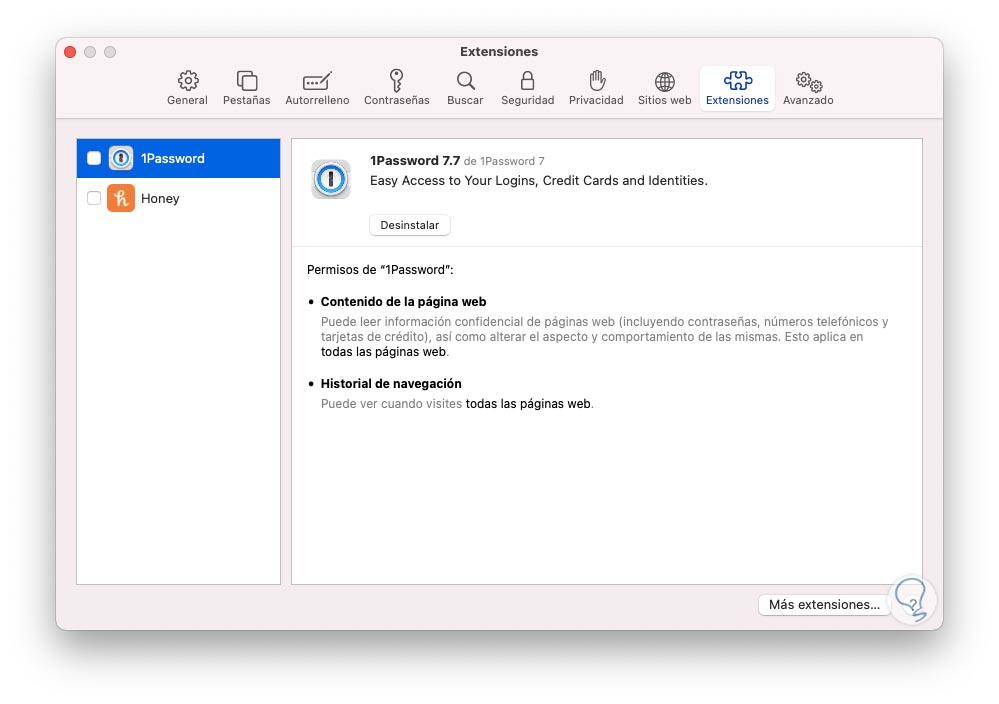 Este es el proceso para deshabilitar o desinstalar una extensión en Safari.