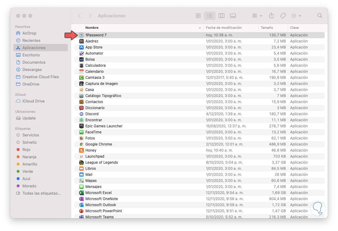 Damos clic en “Mostrar en Finder” y esto nos redirecciona a la sección Aplicaciones del Finder de macOS: