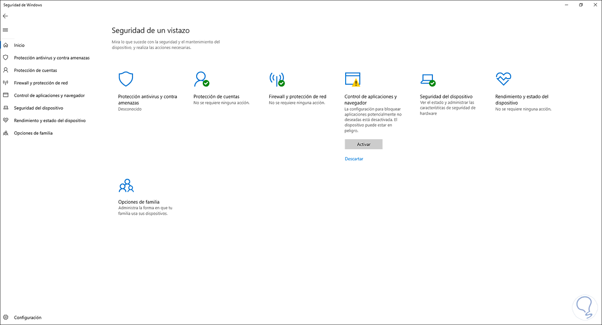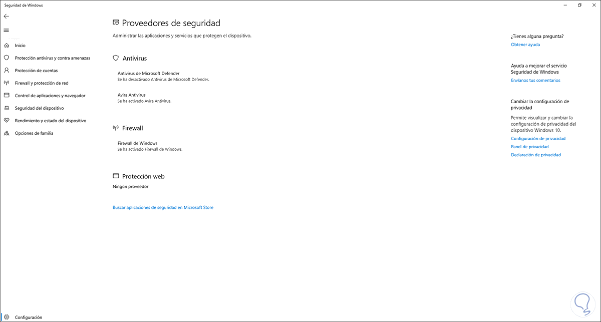 Ahora confirmamos que Windows 10 ha establecido este como el antivirus por defecto, abrimos Seguridad de Windows: