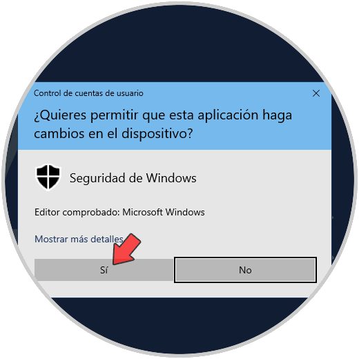 Debemos aceptar las condiciones de UAC de Windows 10: