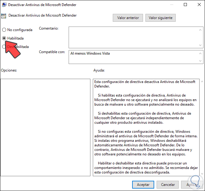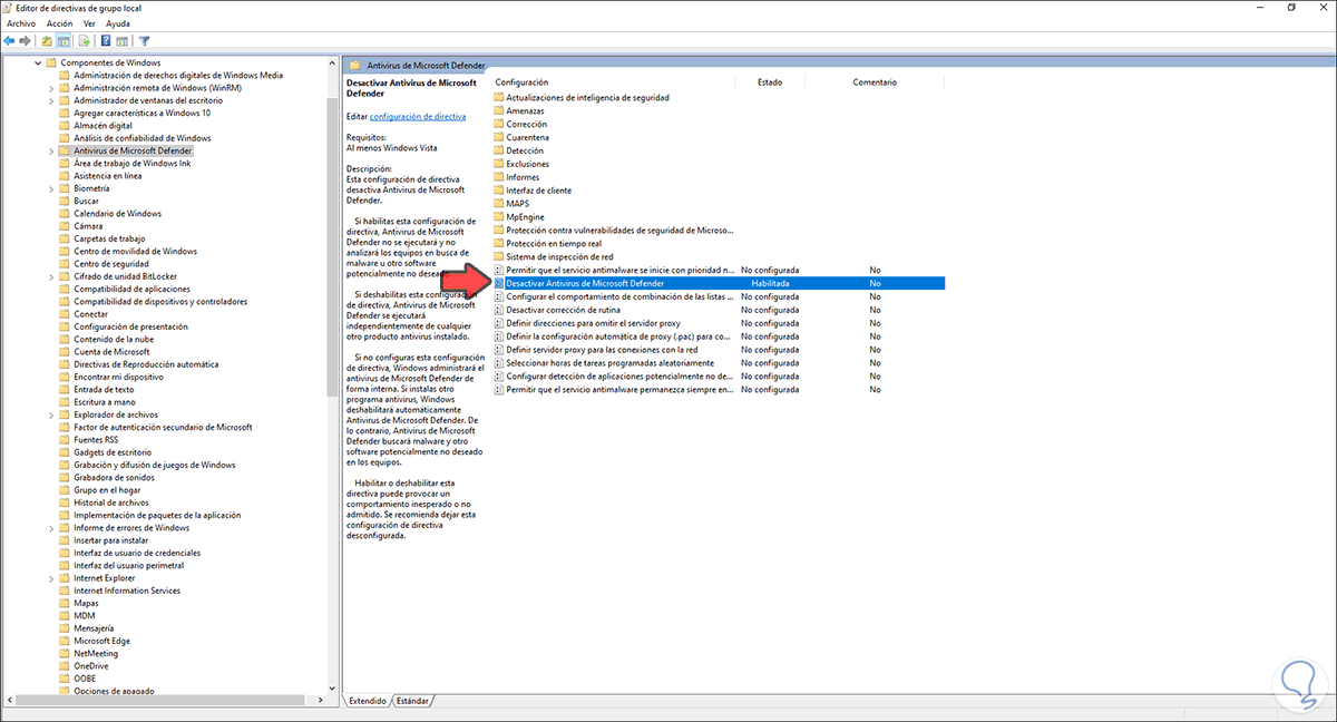2. Desactivar Windows Defender desde las políticas locales del sistema