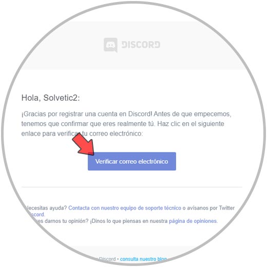 Para esto abrimos el correo y el mensaje que recibimos de Discord: