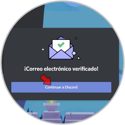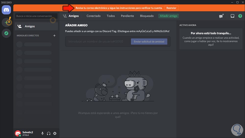 Damos clic en “Continuar” y accederemos a Discord pero como vemos en la parte superior es necesario validar la cuenta: