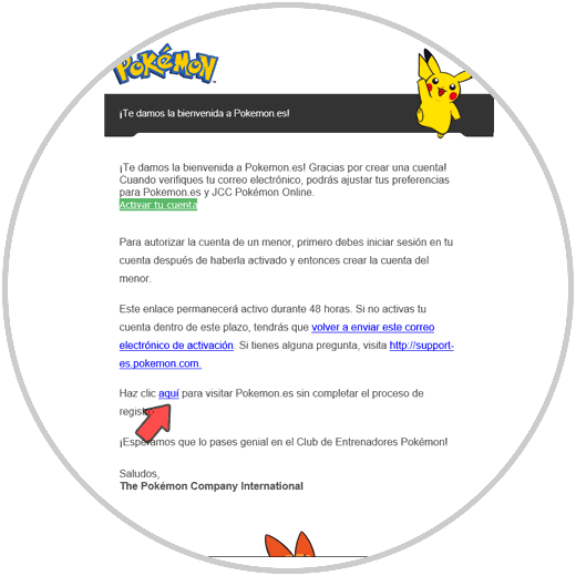 Como vemos la cuenta ha sido creada, es momento de activarla, para esto abrimos nuestro correo y vamos al mensaje recibido de parte del Club de Entrenadores de Pokémon:
