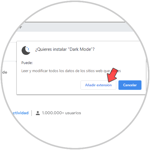Se desplegará el siguiente mensaje. Confirmamos la acción dando clic en “Añadir extensión”,