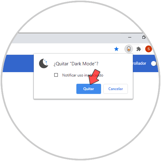 O bien podemos dar clic en el botón “Quitar” al lado de la extensión, al dar clic allí veremos una pequeña ventana emergente: