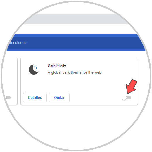 Cuando no sea mas necesario el uso de extensiones en el navegador, disponemos de dos opciones, la primera es ir de nuevo a Personaliza y controla Google Chrome – Mas herramientas – Extensiones, allí podemos deshabilitar la extensión pulsando sobre el interruptor de esta:
