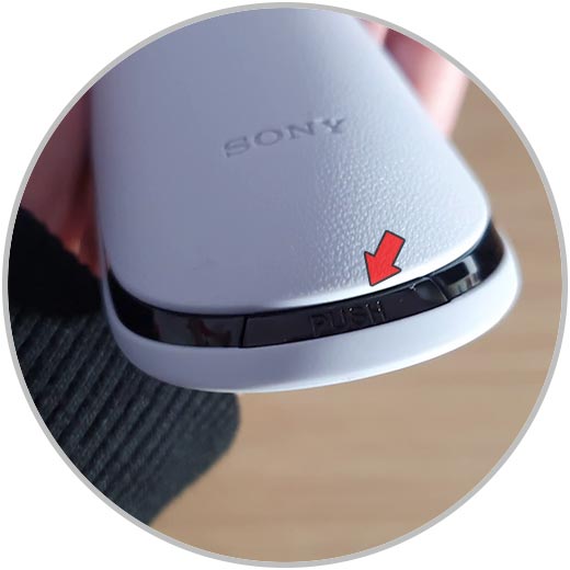 Lo primero que debes hacer, es poner las pilas al mando. Para ello levanta la tapa de la parte trasera del mando presionando sobre el botón negro que pone push.