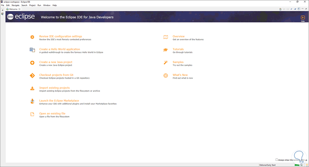 Al cargarse Eclipse veremos lo siguiente: