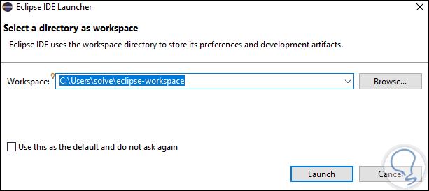Damos clic en Launch para proceder con el inicio de Eclipse:
