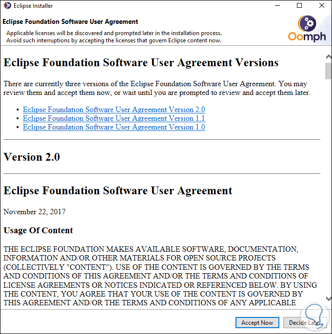 Allí damos clic en Accept Now para continuar con la instalación:
