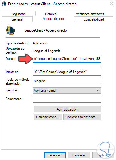 Aplicamos los cambios y damos doble clic sobre el acceso, podemos ver que ahora LOL esta en el nuevo idioma seleccionado.