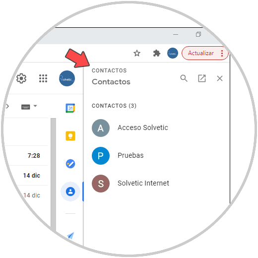 Allí damos clic en el icono de contactos ubicado en la parte lateral derecha de Gmail.