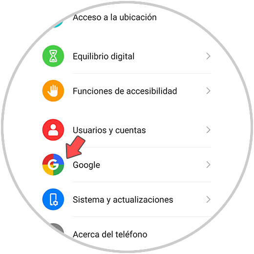 Para este caso usaremos Android, para esto vamos a los ajustes del teléfono y ubicaremos la opción Google: