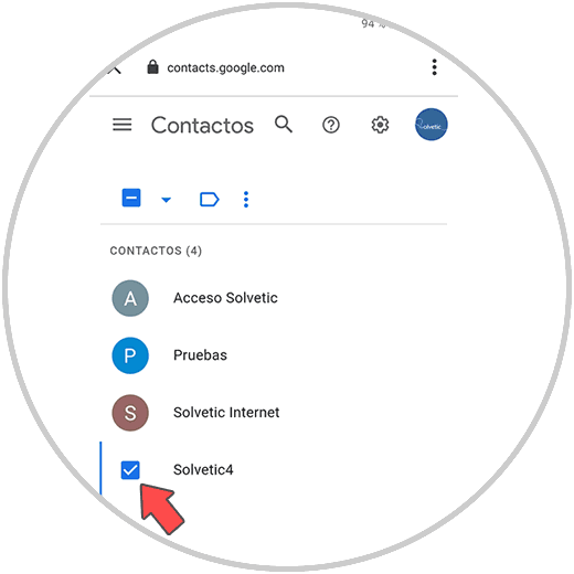 Para eliminar un contacto, pulsamos sobre este para seleccionarlo: